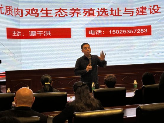 图2谭千洪专家讲解《优质肉鸡生态养殖选址与建设》