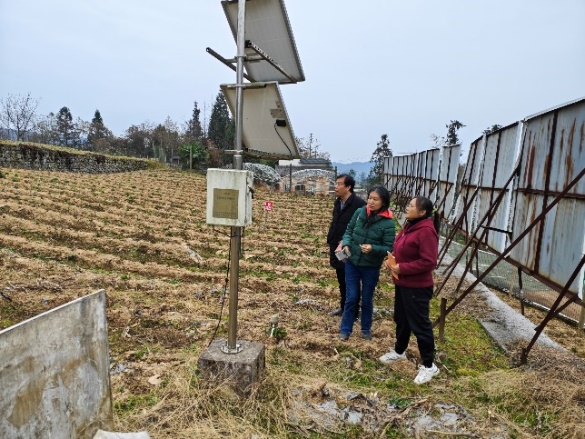 调研组实地查看了武隆区长坝镇何家堡村、仙女山镇荆竹村,彭水县保家镇三江村、岩东乡堰塘村,以及秀山县梅江镇、清溪场街道等多个土壤墒情监测点。现场对监测设备的运行状态进行了仔细检查与调试,确保设备性能稳定;同时,结合监测地块作物生长实际,对种植管理进行科学指导,为进一步提升墒情监测数据的准确性、连续性与代表性奠定了坚实基础。