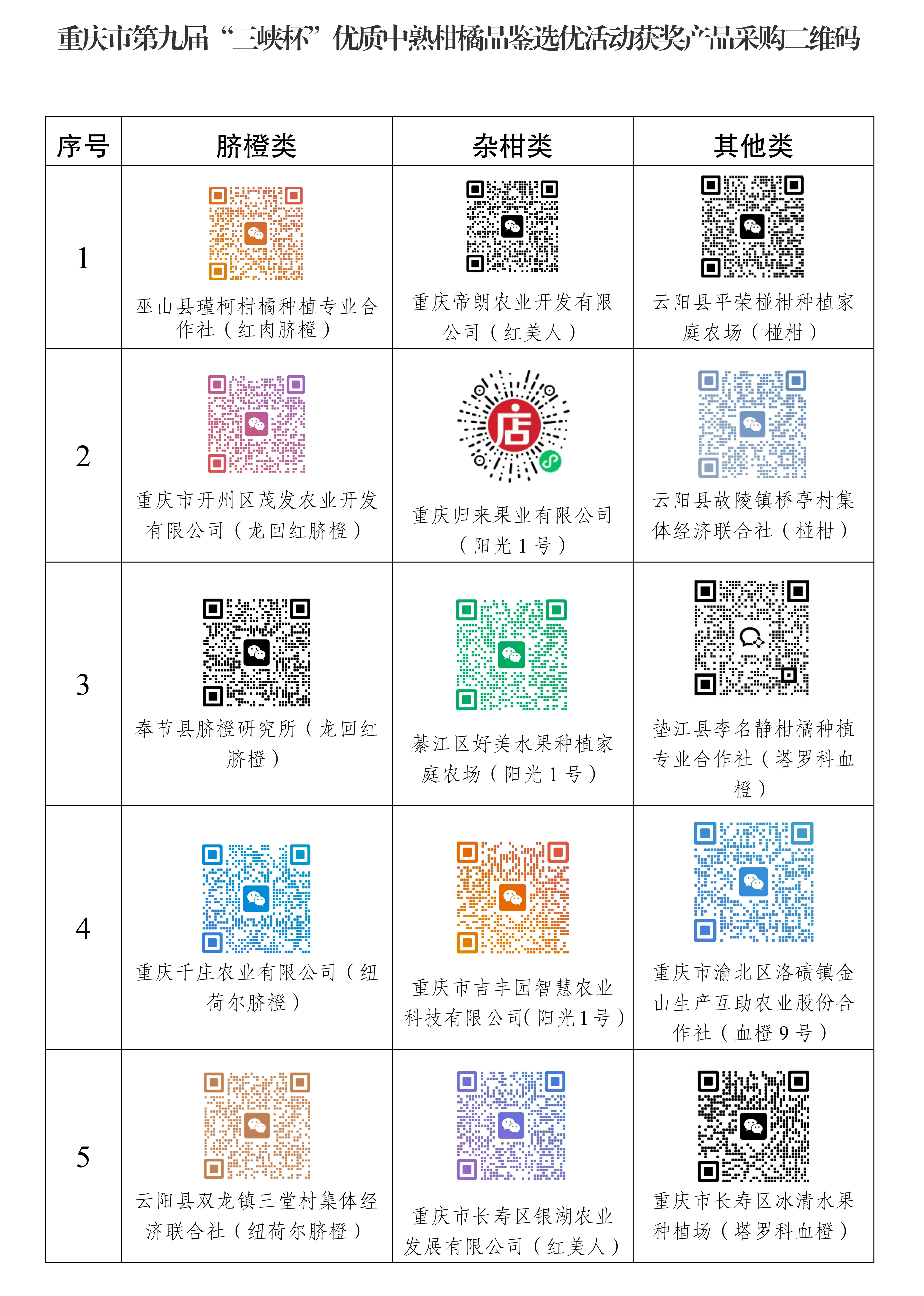 此次活动为重庆优质柑橘搭建了展示推广平台、畅通了产销对接渠道,为全市柑橘产业高质量发展注入强劲动能。为方便消费者选购获奖产品,文末附选购二维码,助力市民足不出户品尝重庆本土优质柑橘。