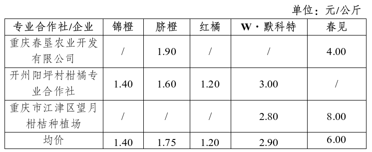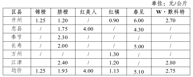 重庆市地产水果价格周报2026年第4期(总第484期)