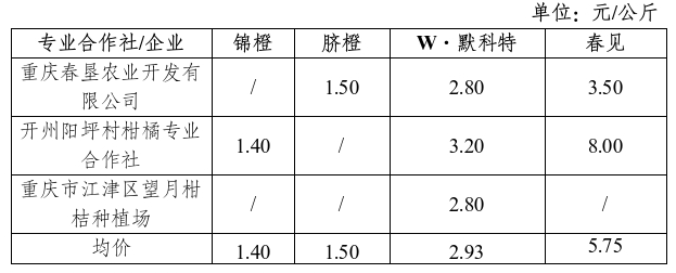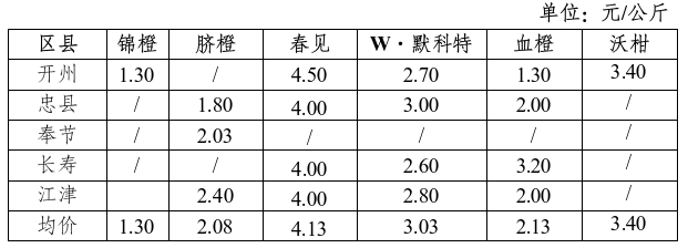二、区县重点果园业主水果价格