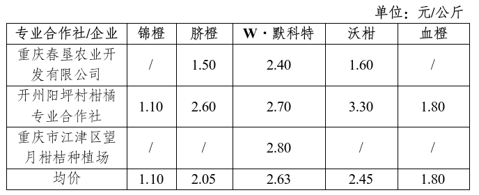 三、重庆市柑橘橙汁加工原料果价格