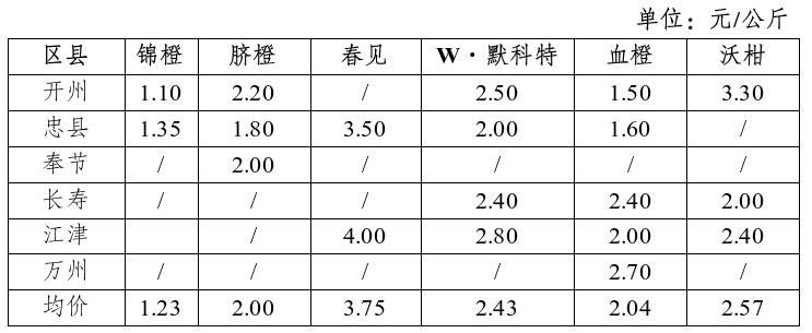 重庆市地产水果价格周报2026年第11期(总第491期)