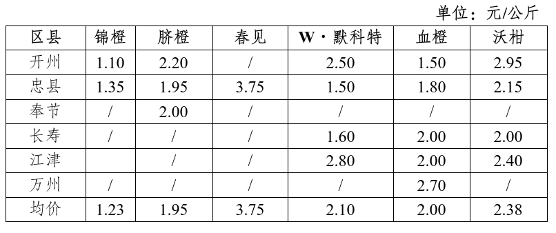 重庆市地产水果价格周报2026年第13期(总第493期)