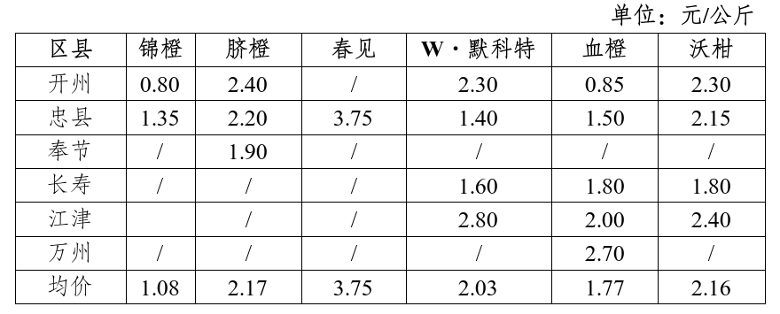 二、区县重点果园业主水果价格
