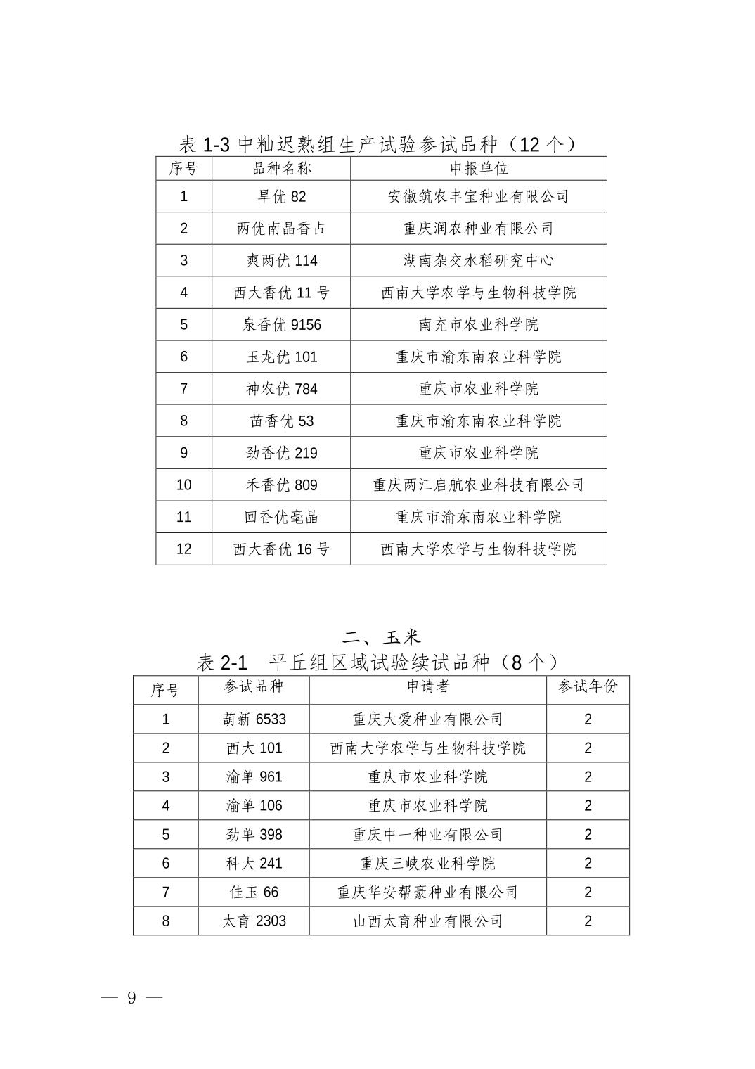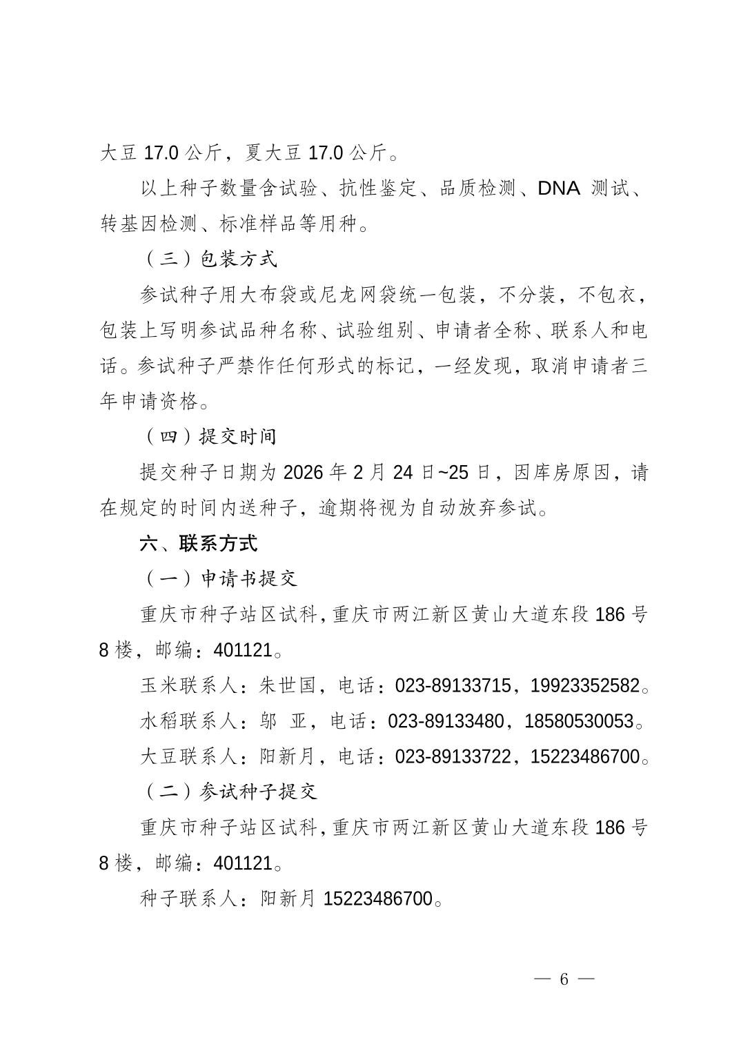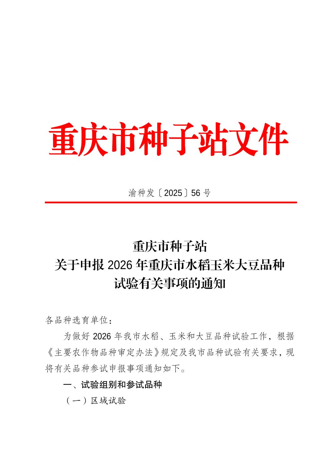 重庆市种子站关于申报 2026 年重庆市水稻玉米大豆品种试验有关事项的通知