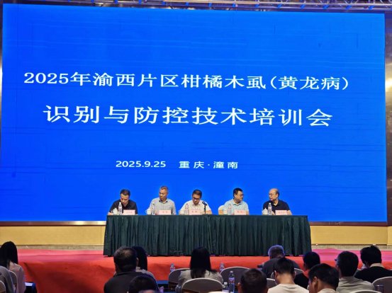 为深入贯彻市领导指示批示精神,落实《重庆市柑橘木虱(黄龙病)防控2025年行动方案》要求,提高柑橘木虱(黄龙病)识别防控技术水平,切实做好监测防控工作。按照市柑橘木虱(黄龙病)防控专项工作机制办公室安排,我站分别于9月25日、10月11日、14日、15日在潼南、云阳、綦江、璧山分片区组织开展全市柑橘木虱(黄龙病)识别与防控技术培训,全市39个区县植保植检机构、果业或经作等产业站(所、中心)、森防机构、城管园林部门技术人员、重点乡镇及重点监测点技术人员、育苗基地负责人和种植大户近500人参加培训。