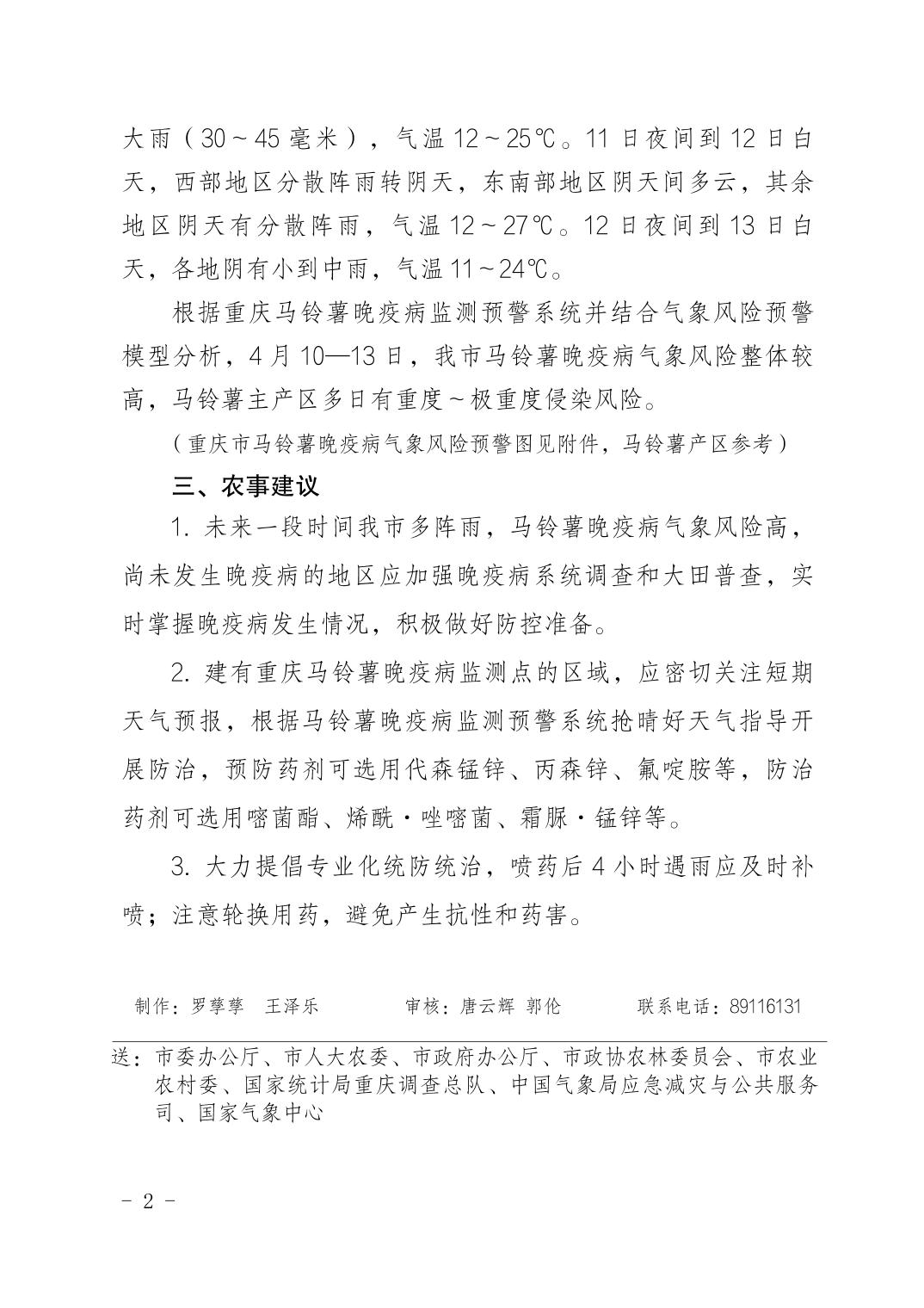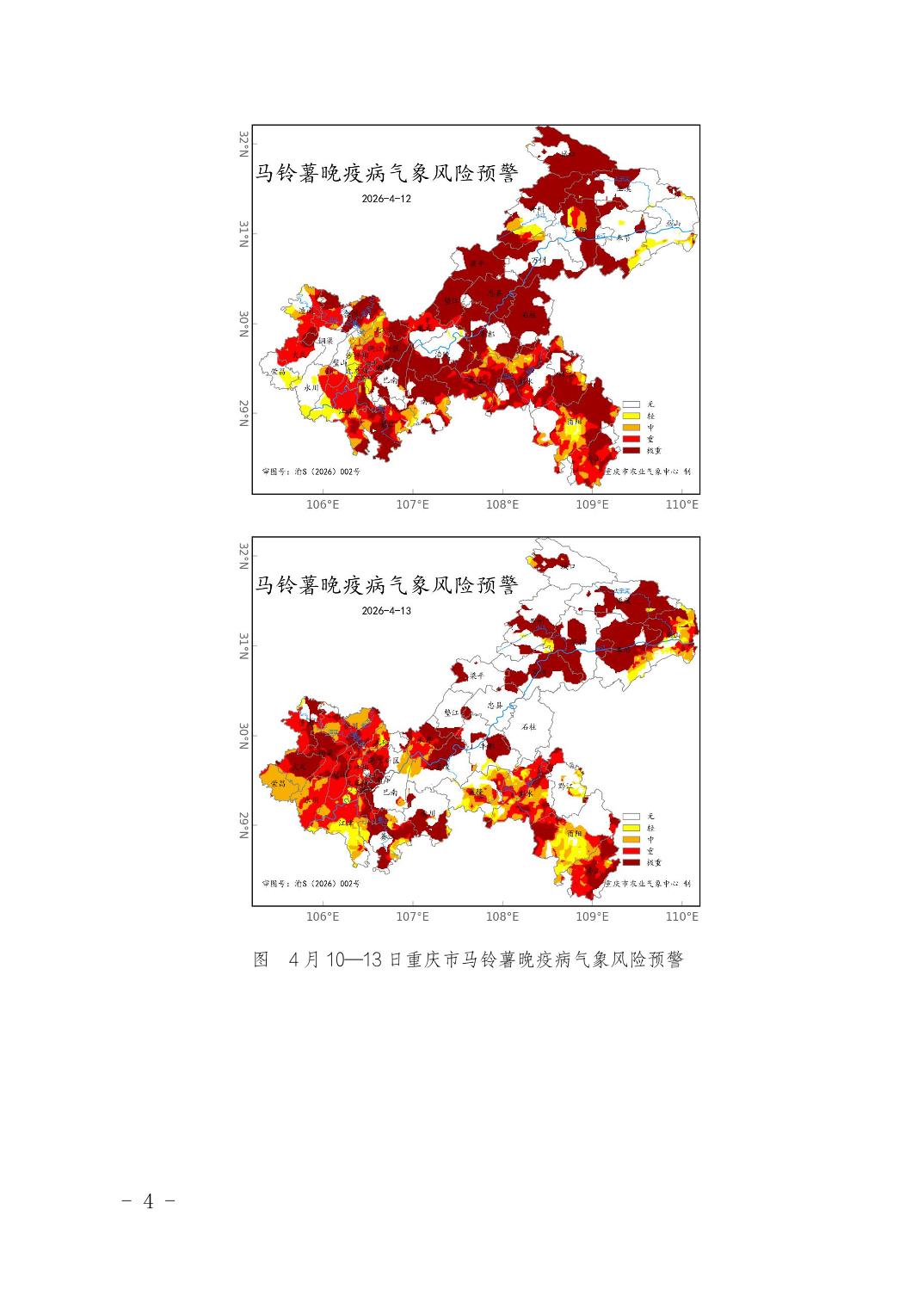 重庆市2026年4月9日农业气象灾害风险预警(马铃薯晚疫病)
