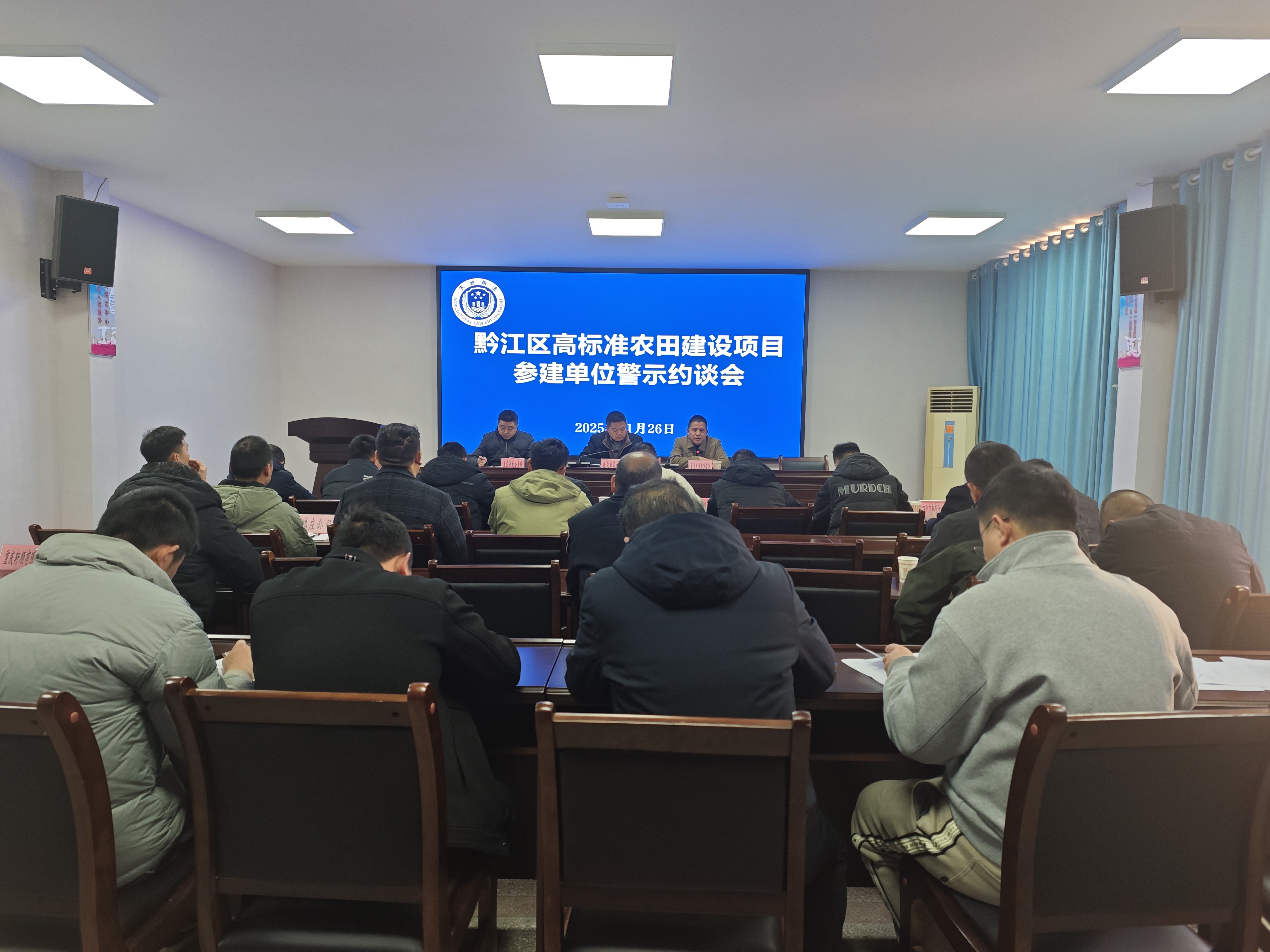 为深度参与到高标农田建设项目中来,履行农业执法监管职责,11月26日,黔江区农业综合行政执法支队召集高标准农田项目建设、施工、设计、监理、跟审等十余个参建单位召开警示约谈会。