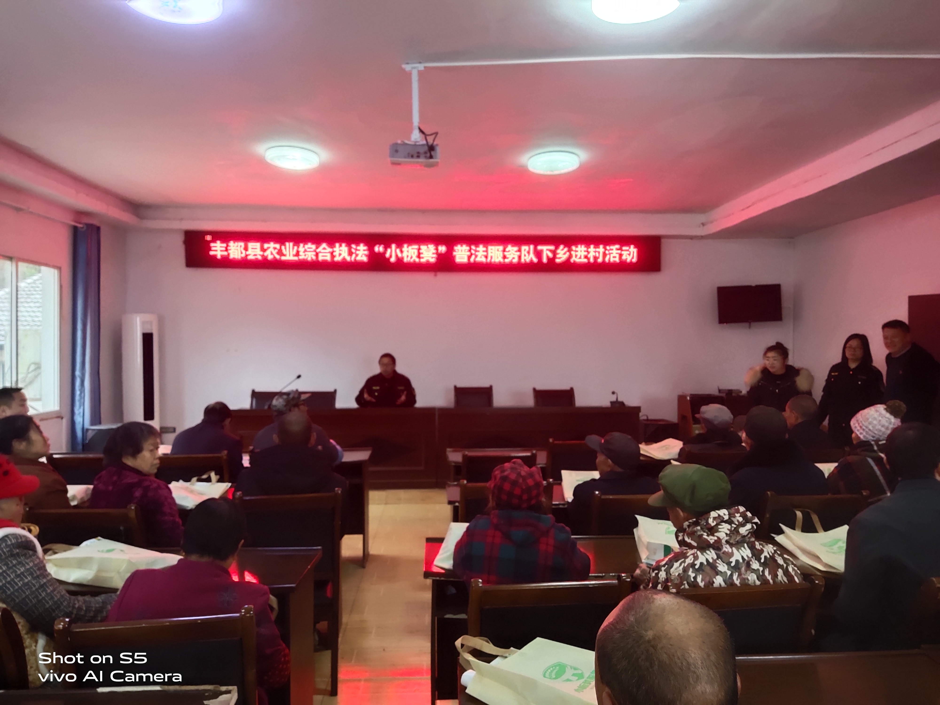 在第十二个“12·4”国家宪法日到来之际,为深入学习贯彻习近平法治思想,大力弘扬宪法精神,维护宪法权威,推动农业法制下乡进村普法工作持续深化,丰都县农业综合行政执法支队依托“小板凳服务队”策划并举办了面向“三农”工作的专项普法宣传活动。
