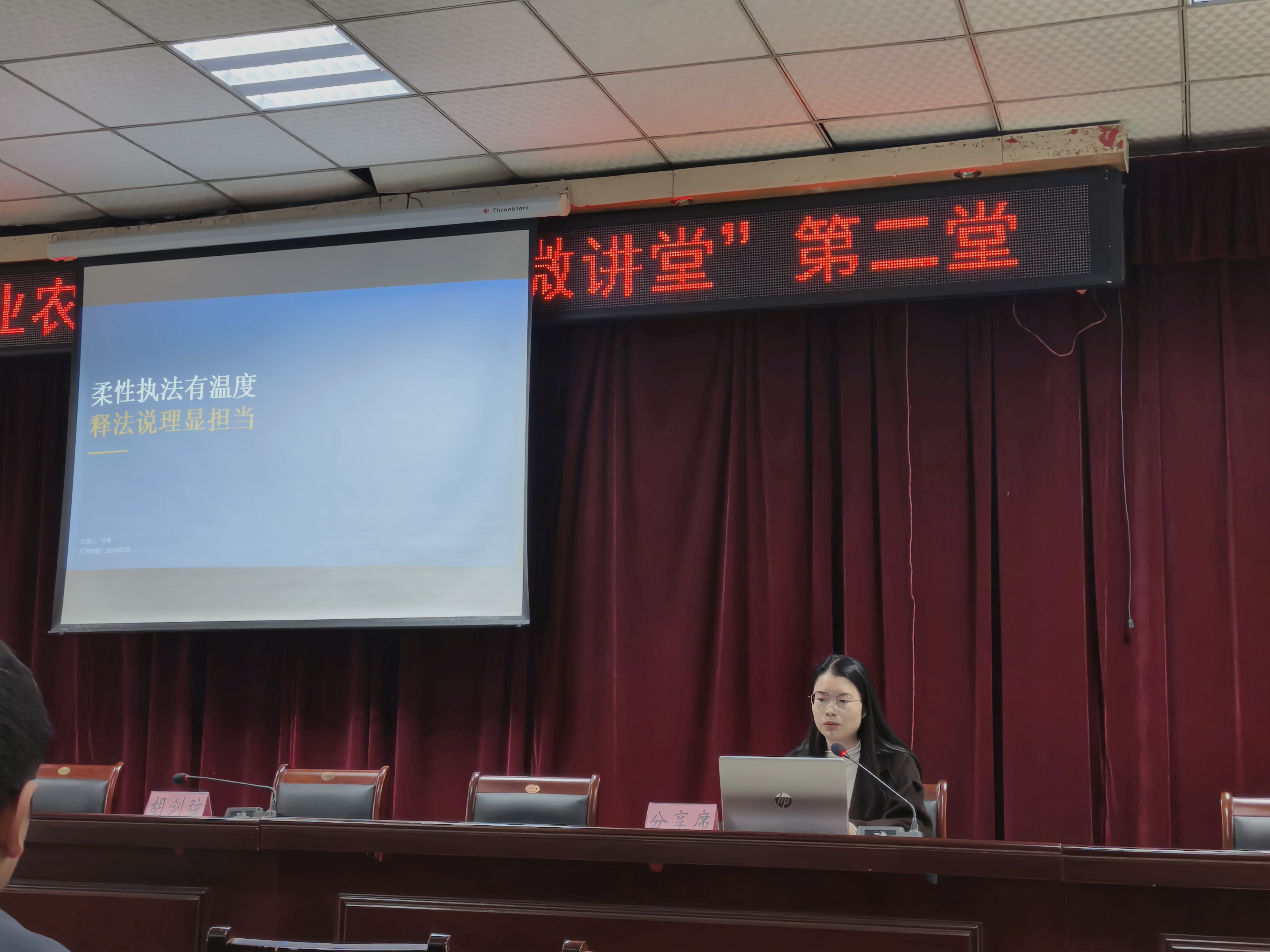 3月7日,在涪陵区农业农村委举办的“年轻干部微讲堂”活动上,支队执法骨干以“成渝联动柔性执法规范宠物诊疗”为主题,分享柔性执法实践经验,获得在场年轻干部一致好评。