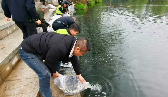 3月16日,秀山县农业农村委员会联合县河长办、平凯街道办事处在梅江河畔开展非法捕捞生态损害赔偿增殖放流活动,以实际行动修复流域渔业资源,守护水域生态环境。