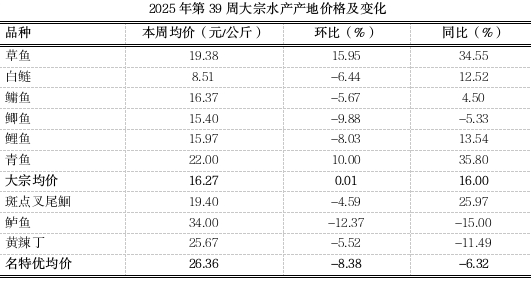 2025年第39周重庆渔业市场周报(总第135期)