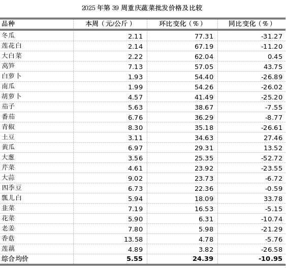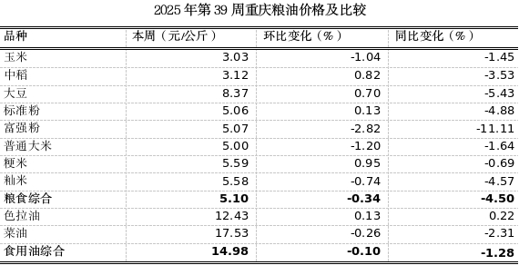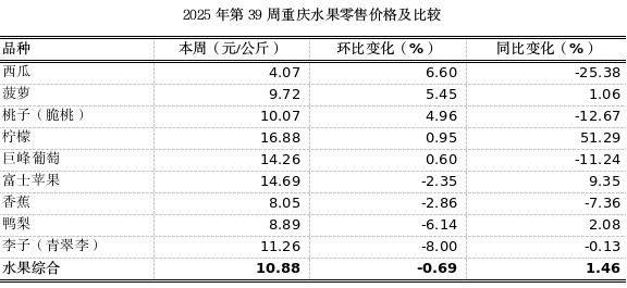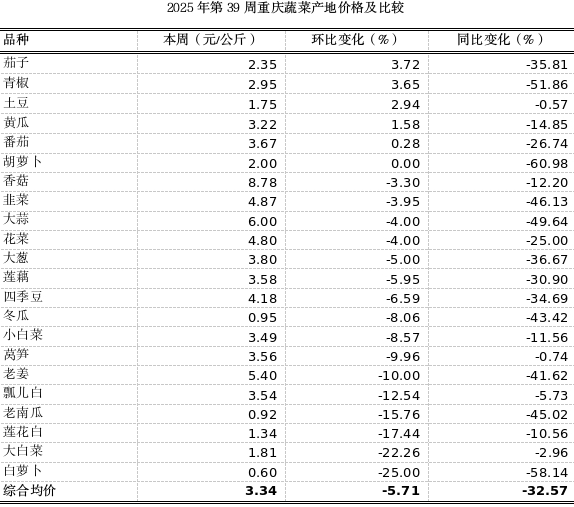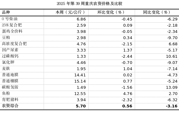 重庆农产品及农资价格周报2025年第39期(总第874期)