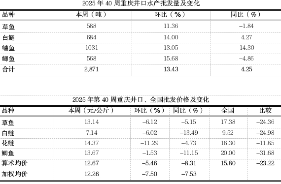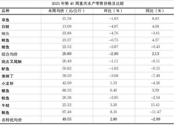 2025年第40周重庆渔业市场周报(总第136期)