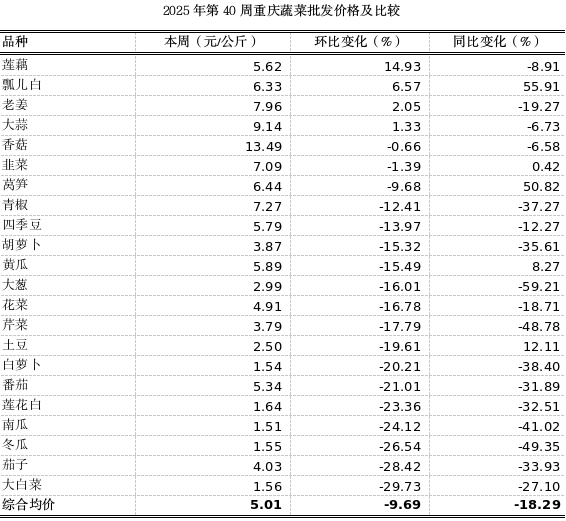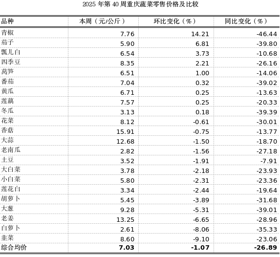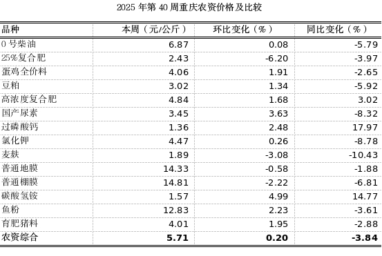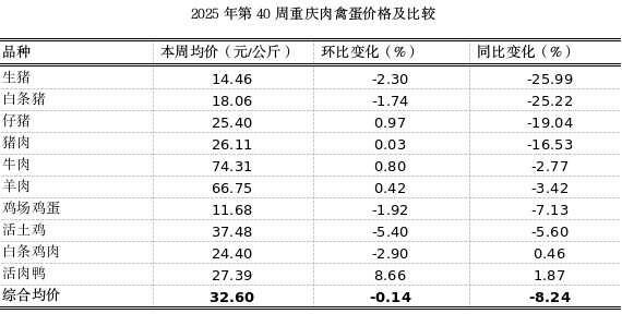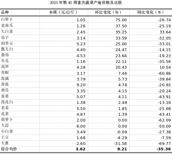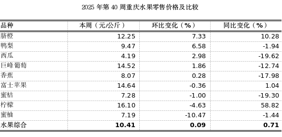重庆农产品及农资价格周报2025年第40期(总第875期)