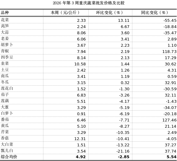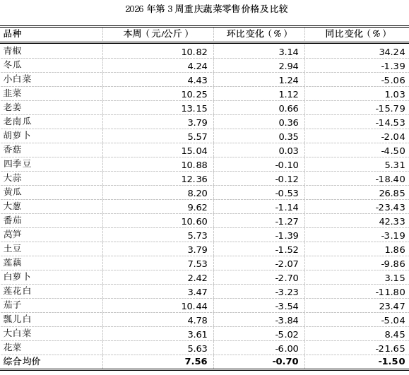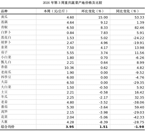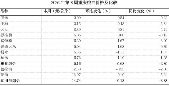 重庆农产品及农资价格周报2026年第3期(第890期)