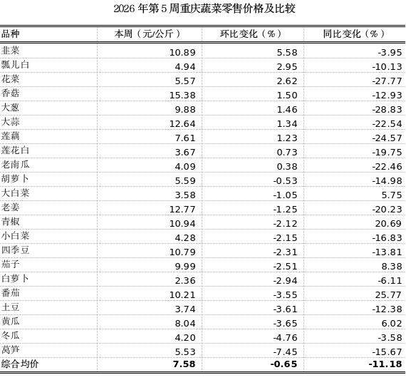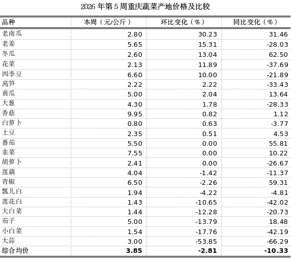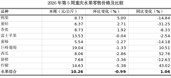 重庆农产品及农资价格周报2026年第5期(第892期)