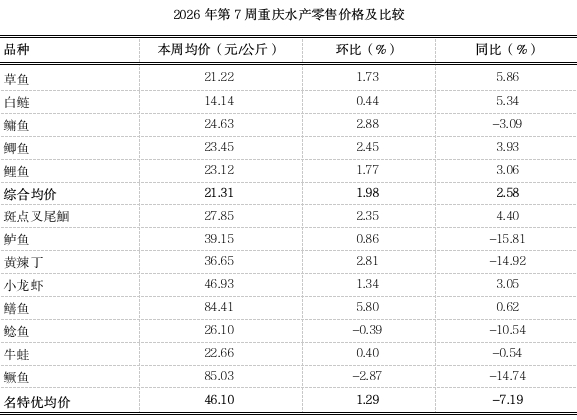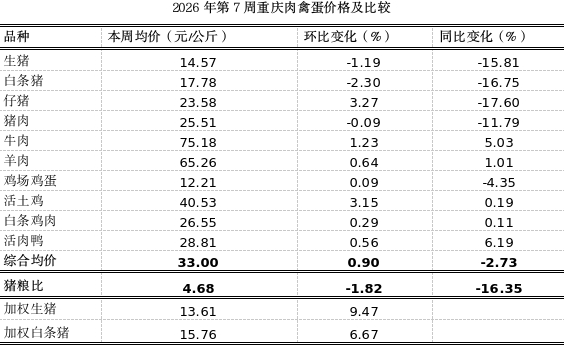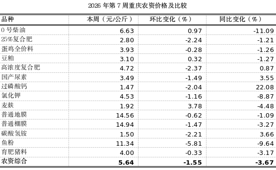 重庆农产品及农资价格周报2026年第7期(第894期)