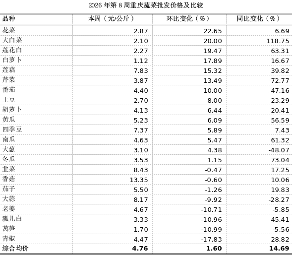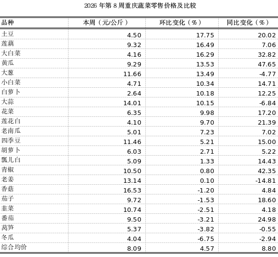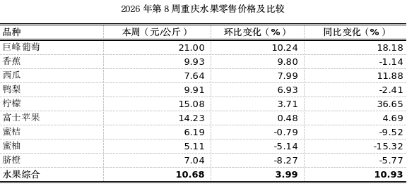 重庆农产品及农资价格周报2026年第8期(第895期)