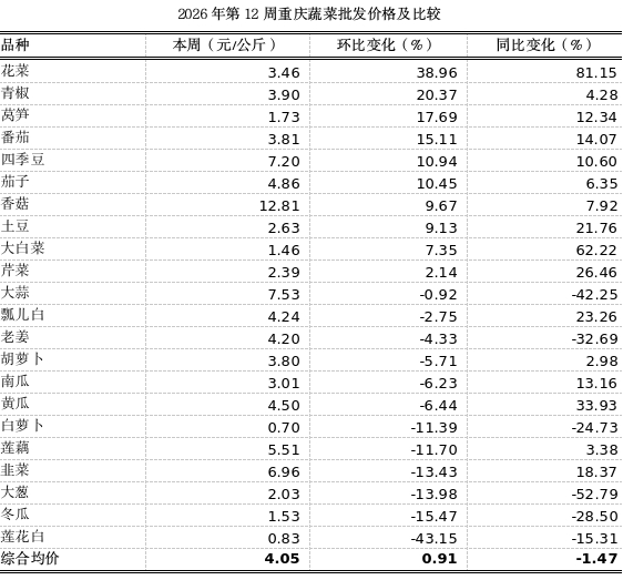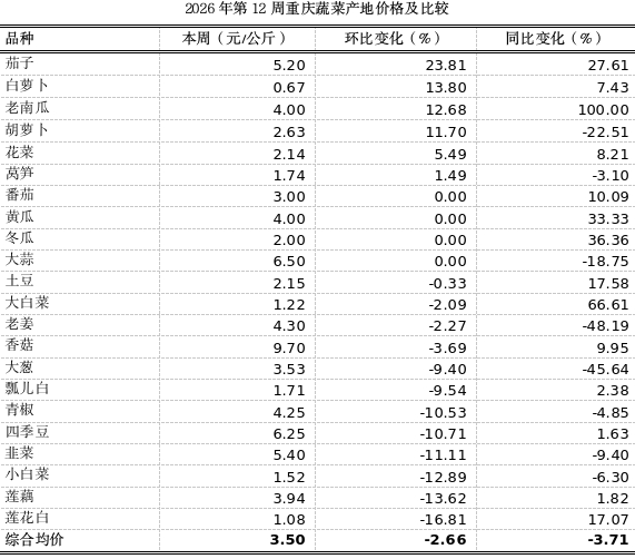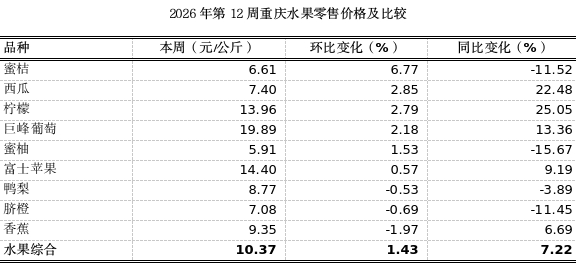 重庆农产品及农资价格周报2026年第12期(第899期)