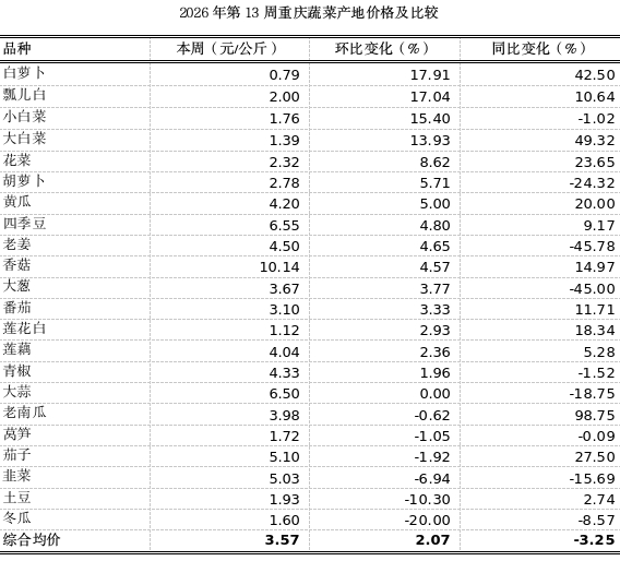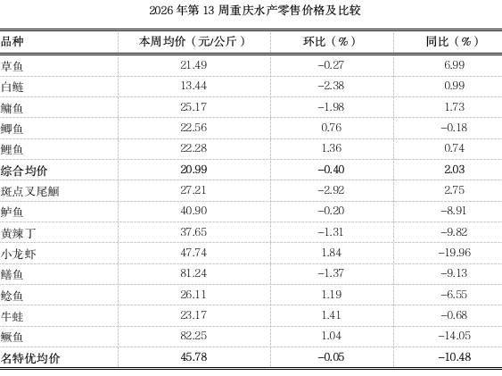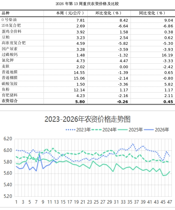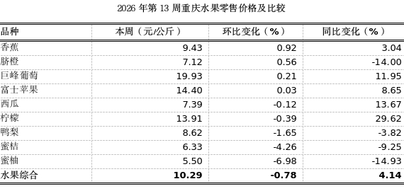 重庆农产品及农资价格周报2026年第13期(第900期)