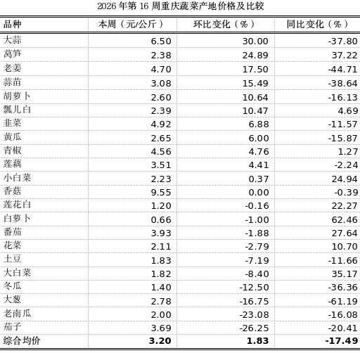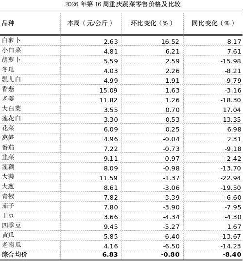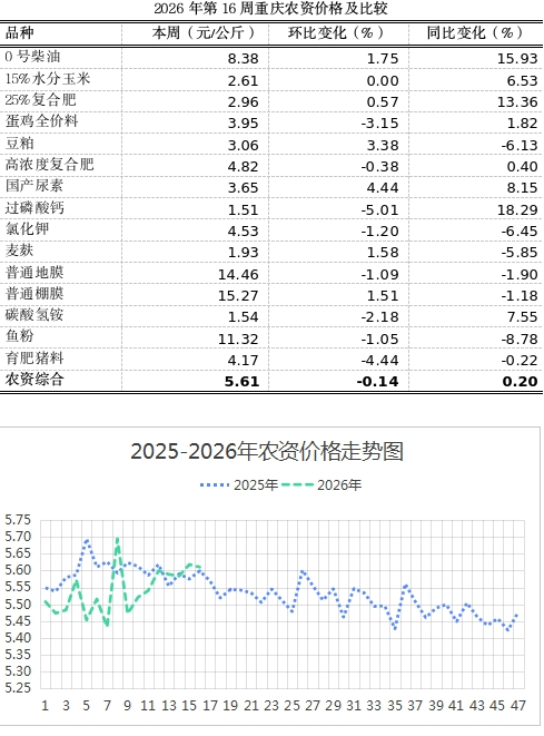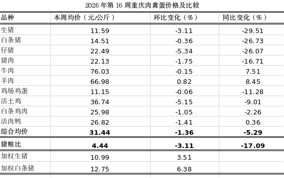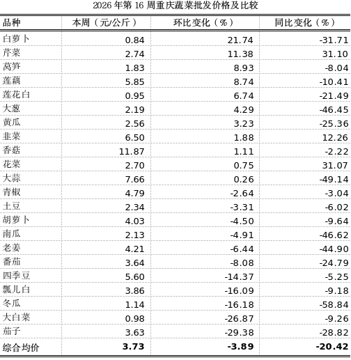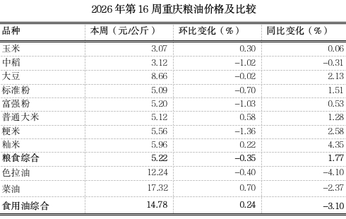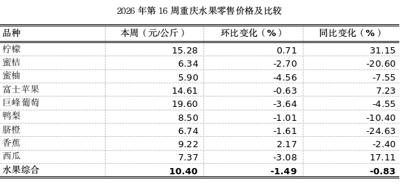 重庆农产品及农资价格周报2026年第16期(第903期)