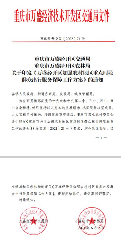图片说明:联合交通局印发《万盛经开区加强农村地区重点时段群众出行服务保障工作方案》