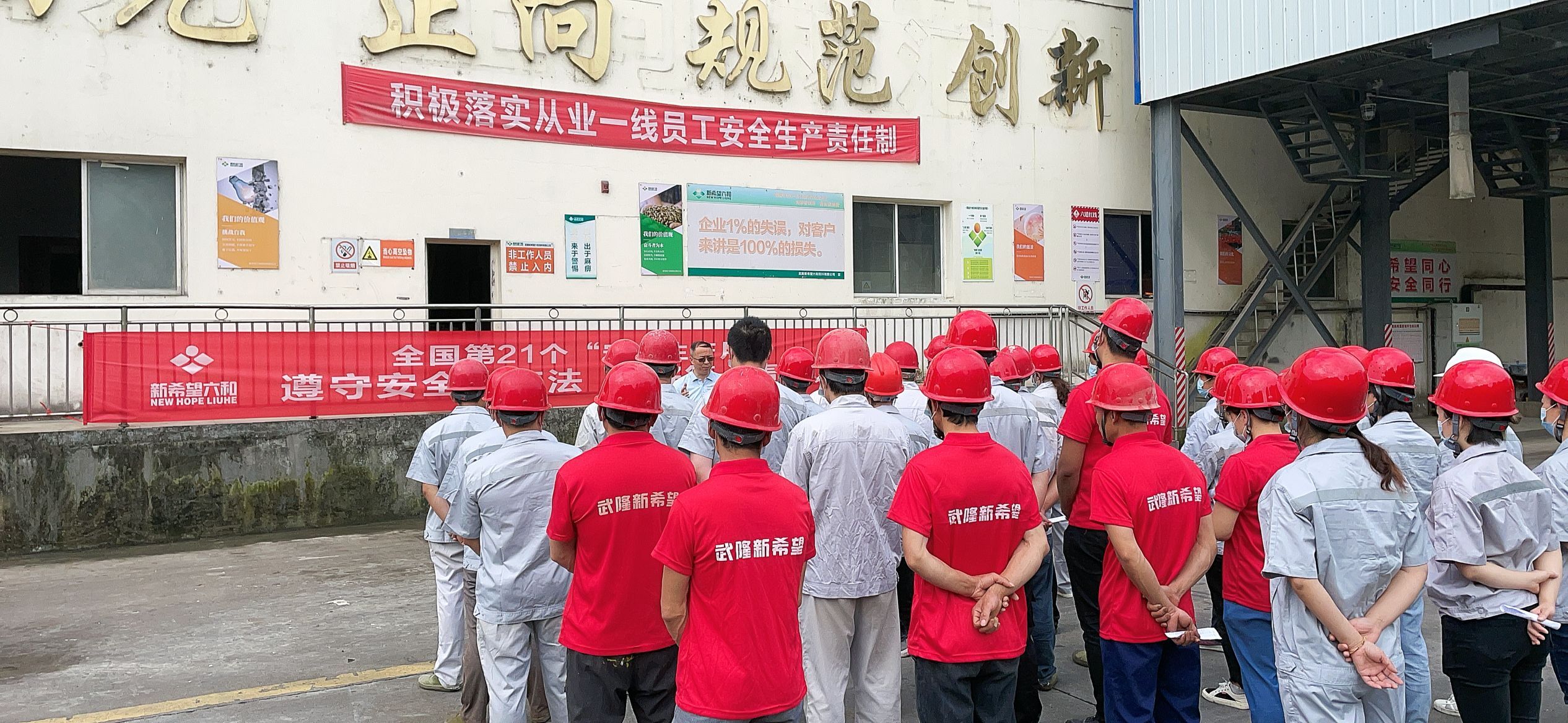 新希望饲料厂6月开展安全生产月、宣传安全生产十五条硬措施现场宣讲照片