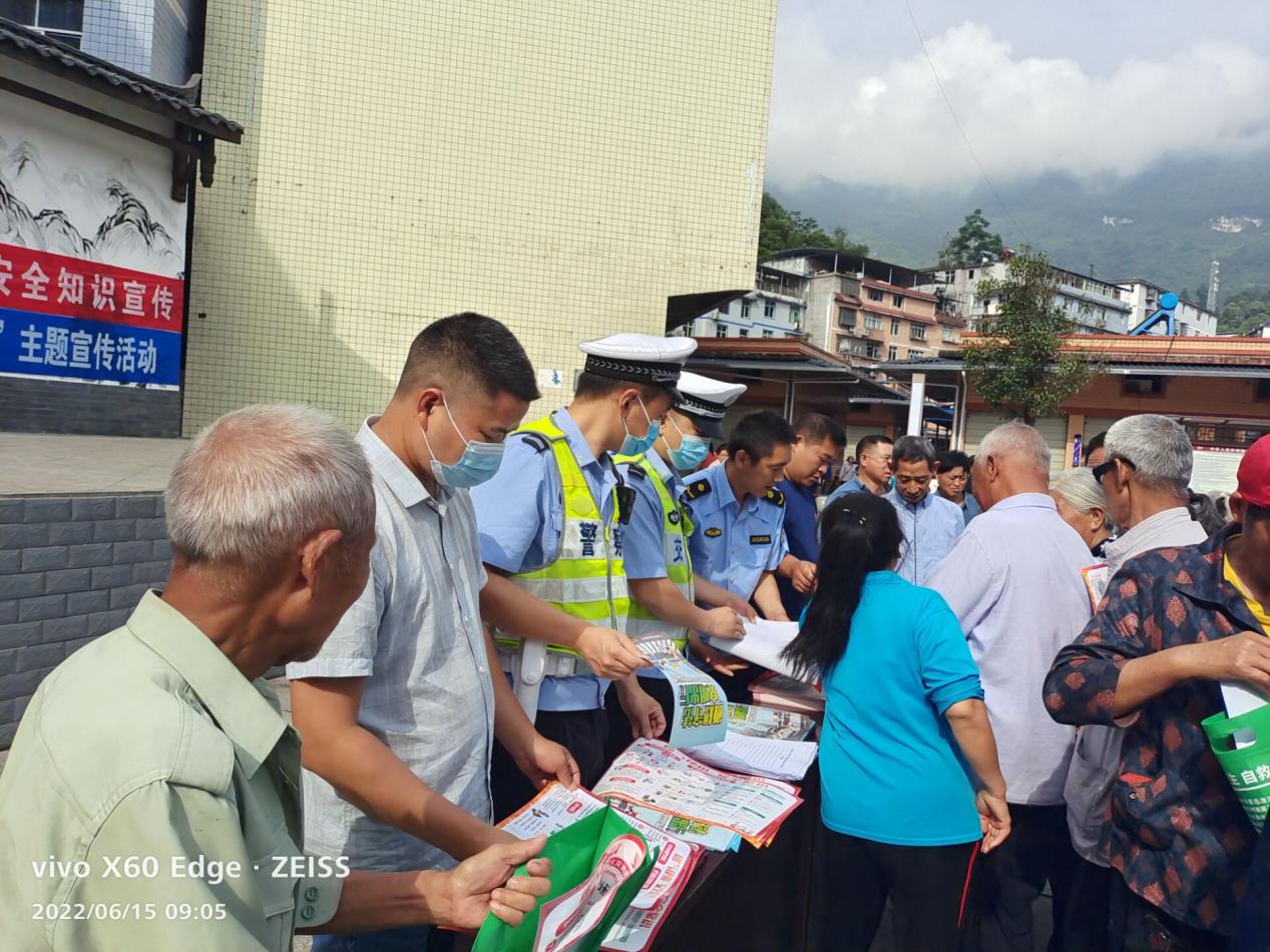 2022年6月16日参与区级安全生产月宣传,发放安全十五条硬措施沼气池、山坪塘等涉农领域的宣传单