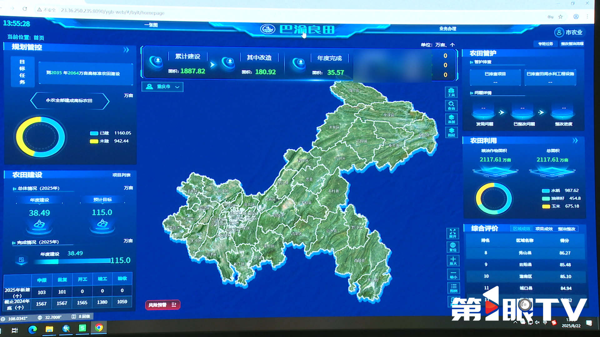 作为数字重庆“1361”规划中“数字政务”系统“生态景观”跑道的重要组成部分,“巴渝良田”应用系统已进入试运行阶段,通过数字化手段,实现了高标准农田从选址、设计、建设到验收、管护的全链条动态监管。
