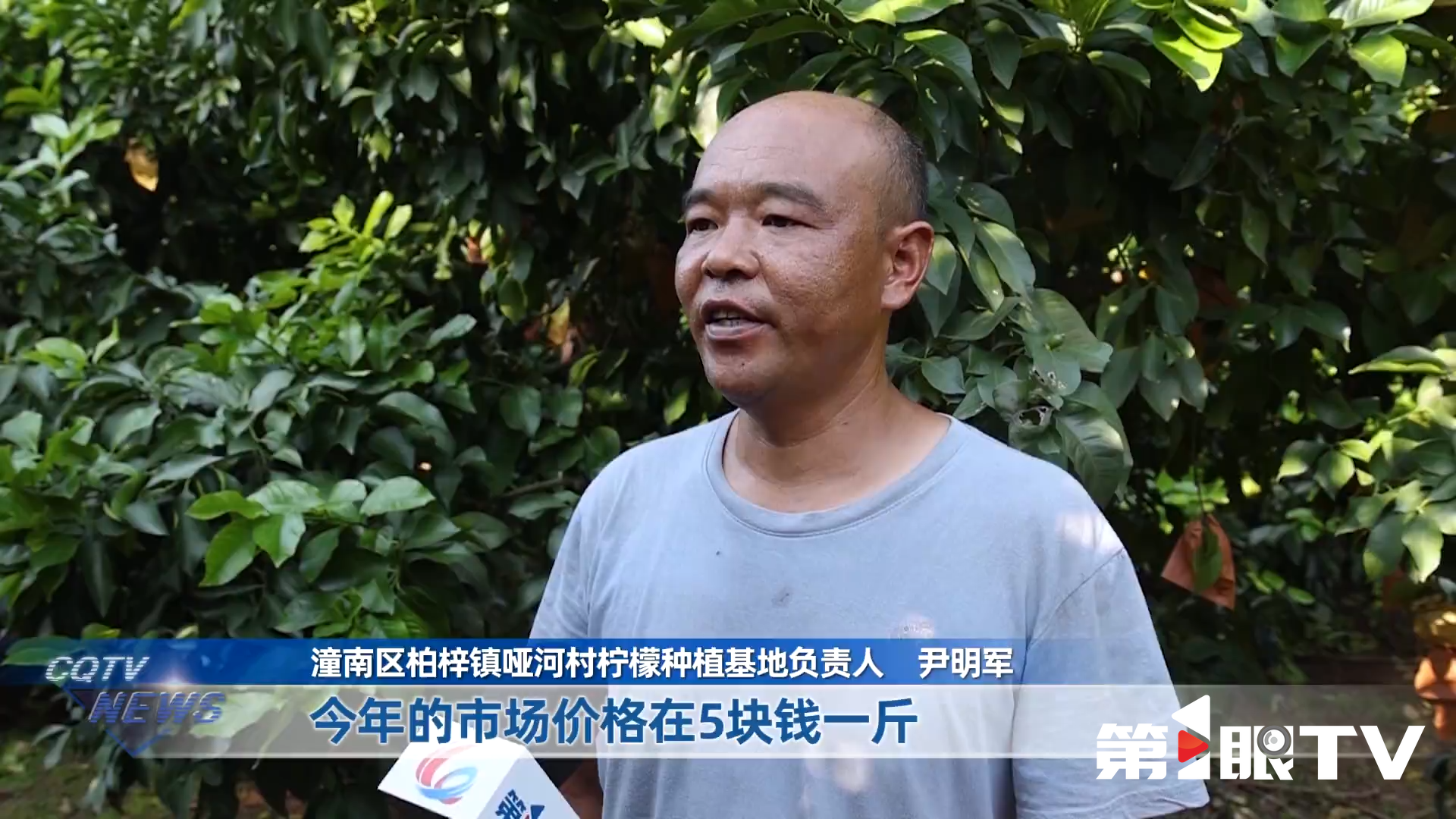 潼南区柏梓镇哑河村柠檬种植基地负责人尹明军:“今年的市场价格在5块钱一斤,产值在1000多万,比起去年增产200多万。”