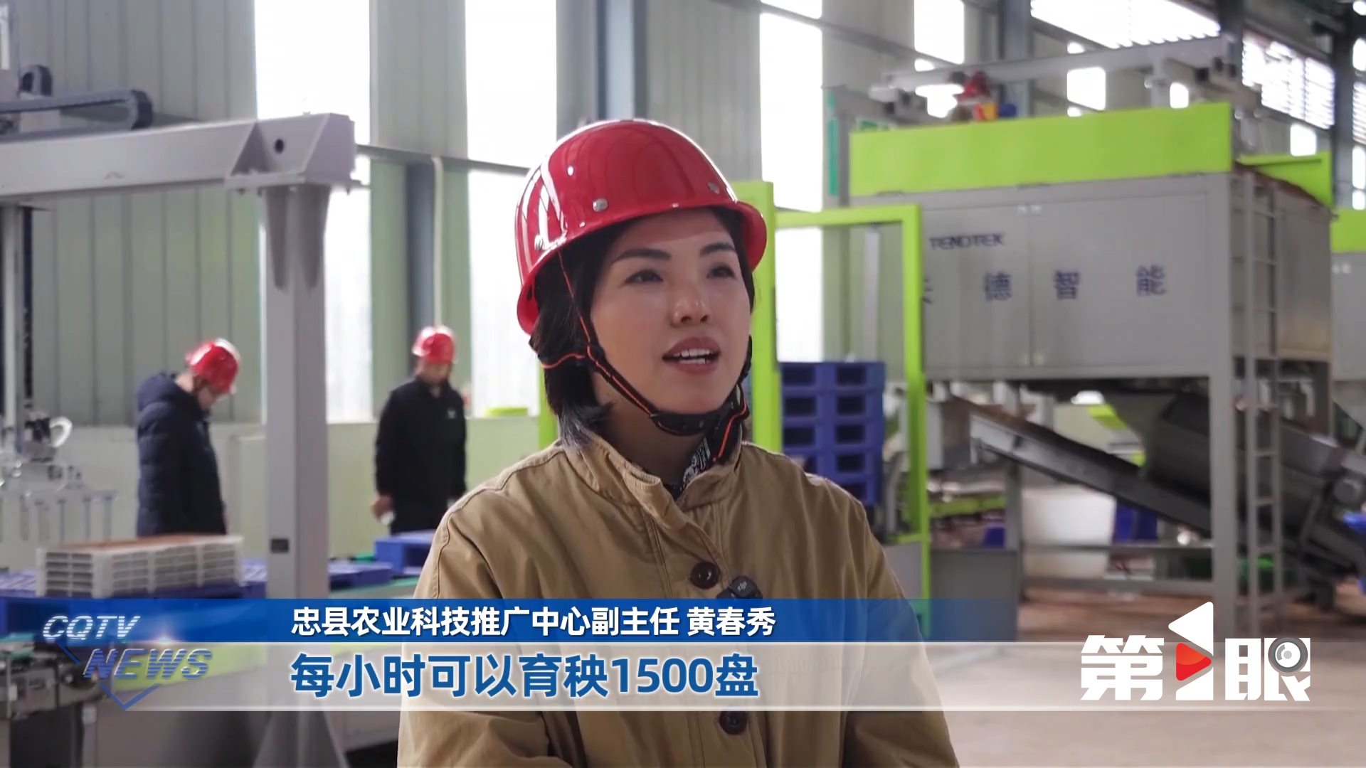 忠县农业科技推广中心副主任黄春秀:“每小时可以育秧1500盘,今年计划育秧30万盘以上。”