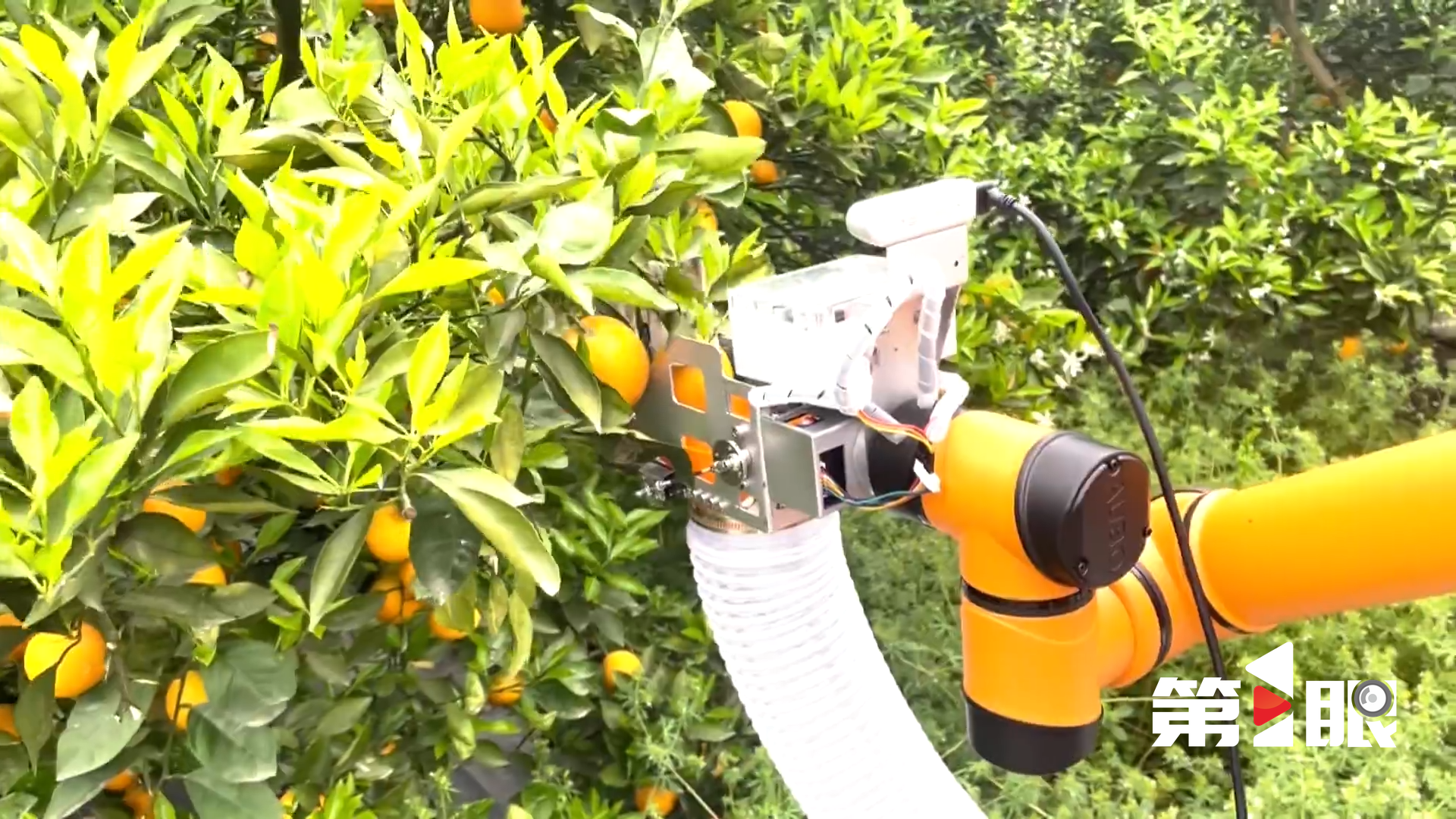 推动农业机械化从“有机可用”向“有好机用”转变,强化急需急用农机装备技术攻关是关键。近日,一批新型农机集中亮相潼南梓潼街道为农服务中心。柑橘采摘机器人能在枝叶遮挡等复杂环境下,精准识别、定位柑橘,自动完成采摘。末端执行器+机械臂可以模拟人工伸手采摘柑橘的过程。