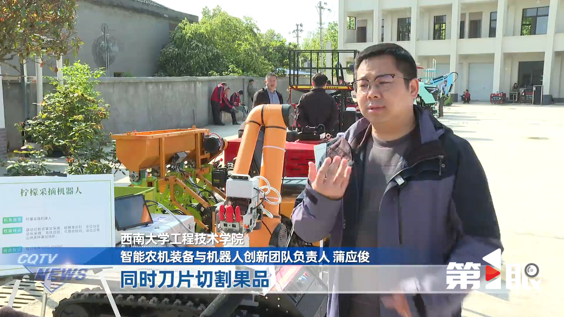 西南大学工程技术学院智能农机装备与机器人创新团队负责人蒲应俊:“伸进去之后,把果实拨弄过来,同时刀片切割果品,通过管道输送到果箱,平均采摘时间一个果实大概需要6秒钟。”