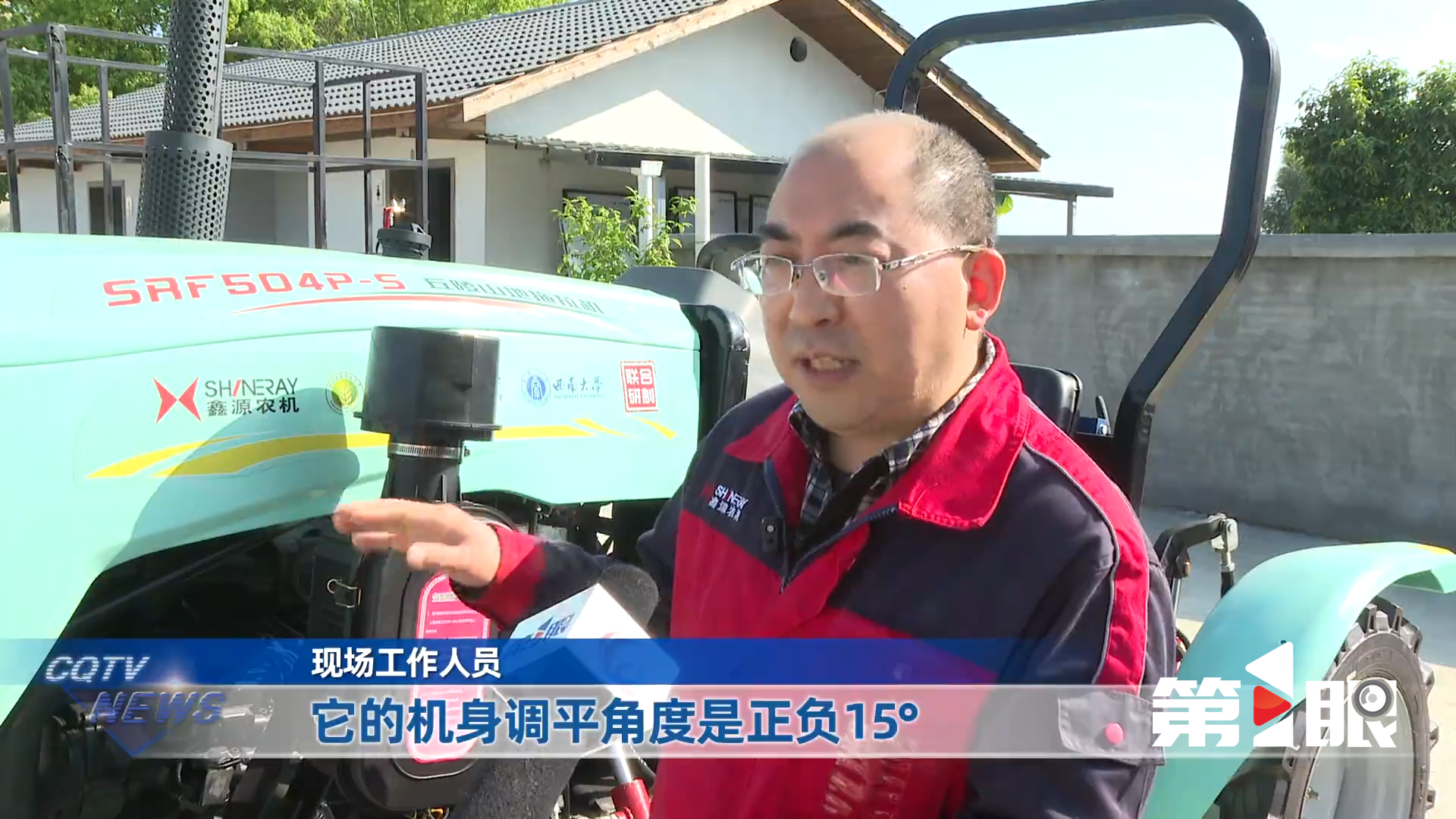 现场工作人员:“它的机身调平角度是正负15°,也就是说在20°的坡地等高线作业,它就只倾斜5°,是一个行业首创。”