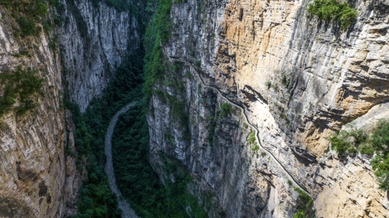 ▲长坝镇“挂壁水渠”。