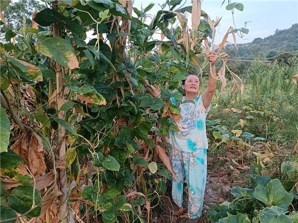 李明朝摘缸豆。特约通讯员 蒋文友 摄